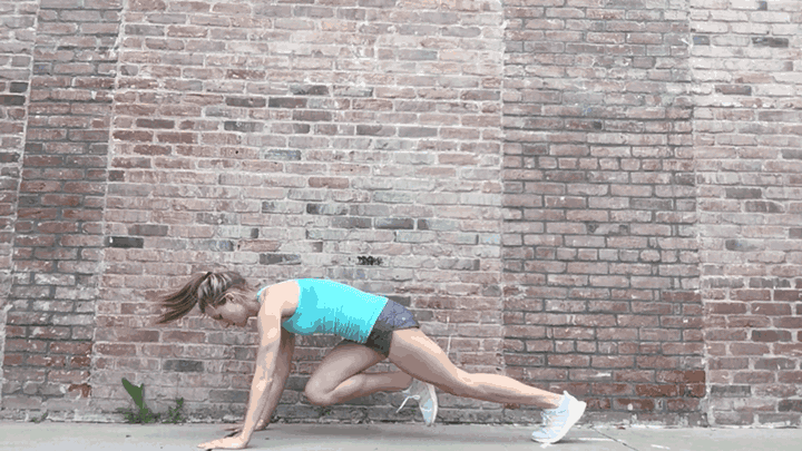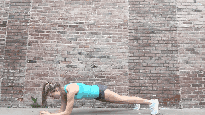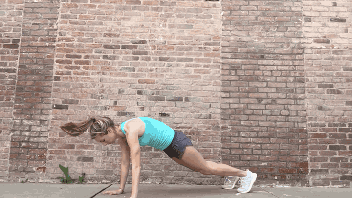 It’s also so important that you use your obliques and hips to keep your body strong and from swaying side to side especially during Burpees, Mountain Climbers, and Plank to Table where that entire body stability is necessary.